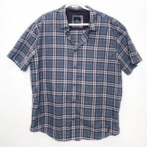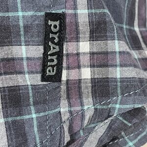 PRANA Men's Offwidth Short Sleeve Button Front Shirt Plaid Organic Cotton XL