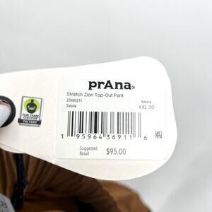 PRANA Men's Stretch Zio Top-Out Pants XXL Brown Sepia Straight Leg Hiking NWT