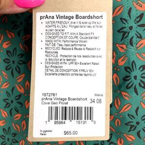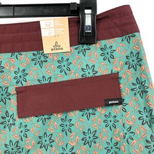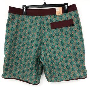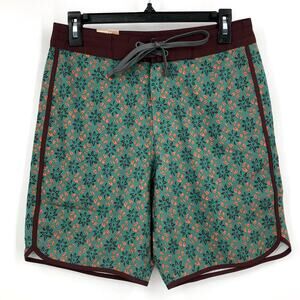 PRANA Men's Vintage Boardshort Size 34 Green Cove Geo Floral 8" Inseam Swim NWT