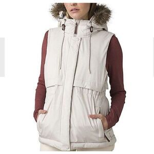 PRANA Puffer Vest Women Medium Banajaara NEW Down Filled Hooded Full Zip Ivory