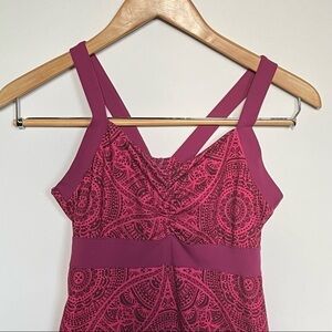 The Prana Women’s Quinn Dress takes you from casual drinks on the patio to cocktail parties downtown. Soft recycled fabric lets you pull out the moves on the dance floor, while a built-in shelf bra gives you support with no need for a stand-alone bra. The scoop neck and double-strap racer back flatter your figure.