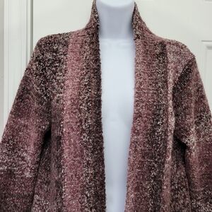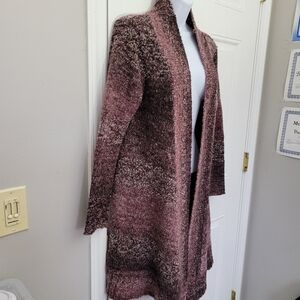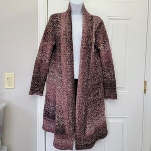 PRANA Rhonda Duster Open Cardigan Burgandy Marled Wool Blend Cozy Medium