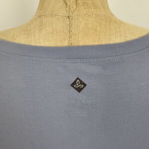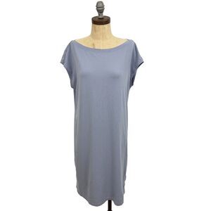 PRANA Sanna Dress L Blue Boatneck T-Shirt Mini Cap Sleeve Casual EUC B72
