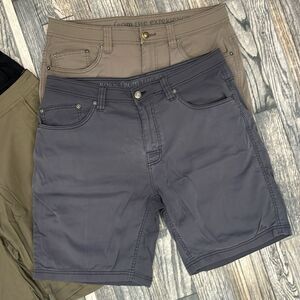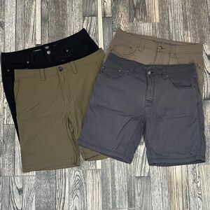 🔥 PRANA Shorts (4 pair lot)- Black, Olive, Gray, Army Green - Men Sz 34/9 - EUC