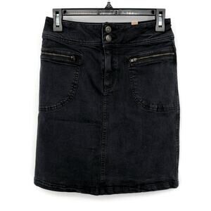 PRANA Women's Broadway Denim Pencil Skirt Size 2 Black Onyx Organic Stretch NWT