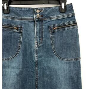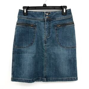 PRANA Women's Broadway Denim Pencil Skirt Size 2 True Blue Organic Cotton NWT