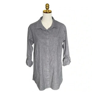 PRANA | Women’s Grey Aster Button Down Open Vent Tunic Shirt Size M