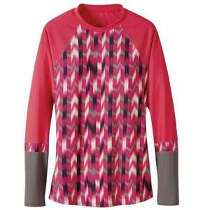 PRANA Womens Lorelie Pink Gray UV Rashguard Long Sleeve Swim Surf Medium