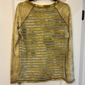 PRANA Long Sleeve Henley Top Striped Yellow Gray Women’s Size Medium