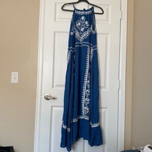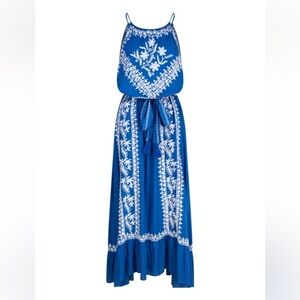 PRANELLA Poppy Maxi Embroidered dress Size Small in Cobalt. Excellent, like new condition. Dress comes with a removable belt. Oversized fit