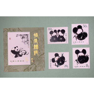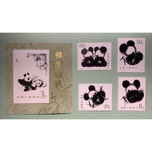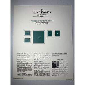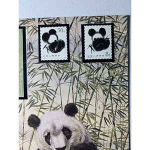 PRC China Giant Panda Vintage Fine Art Souvenir Print & Matching Set Mint OG1985 Stamps