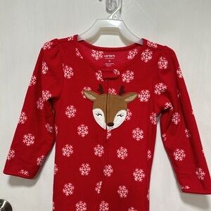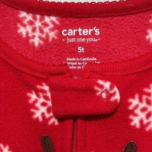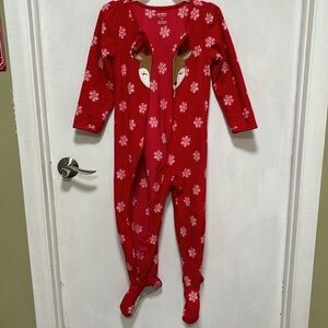 PRE OWNED CARTER'S FLEECE ONE PIECE 5T REINDEER FOOTIE PAJAMAS