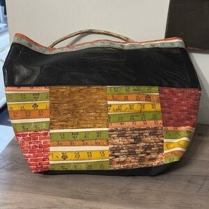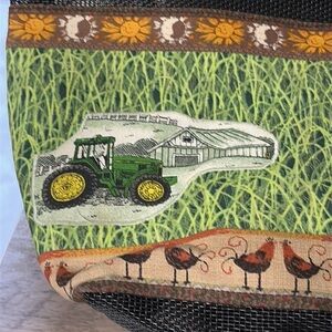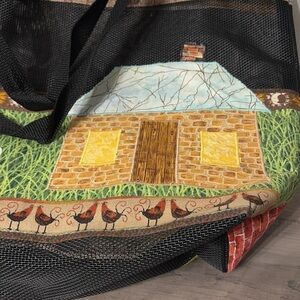 PRE OWNED HOMEMADE FARMHOUSE TRACTOR CHICKENS SHOPPING TOTE BAG WITH MESH