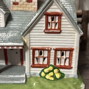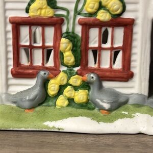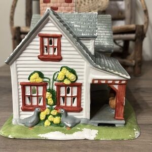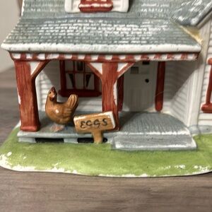Adorable ceramic tea light house with a rustic design. Features a cute chicken and eggs sign. Perfect for adding charm to your kitchen.