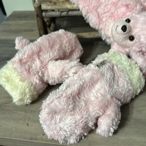 PRE OWNED VINTAGE BESTEVER PINK FAUX FUR GIRL'S POODLE SCARF AND PODDLE MITTENS
