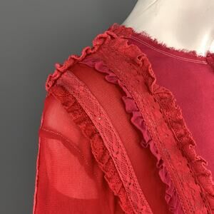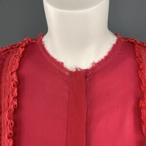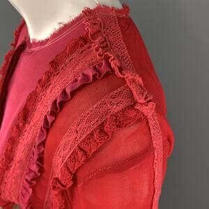 PREEN LINE Size S Red & Fuchsia Silk / Viscose Blend Ruffle Blouse