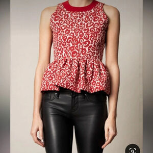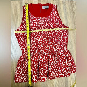 Red and cream leopard print top and skirt. Red zippers on the front to add a little extra.