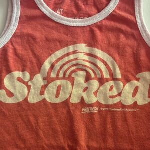 Vibrant orange tank with 'Stoked' print. Perfect for energetic play.