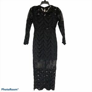 Featuring heavy embroidered open lace, with contrast lace panelling, long sleeves, and a longline length