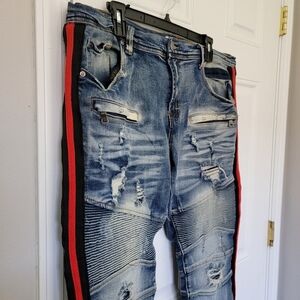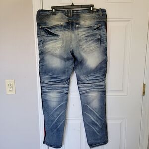 PREME Mens Distressed Red Black Side Stripe Moto Denim Jeans Streetwear 38 / 34