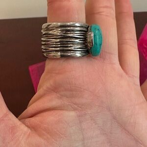 PREMIER DESIGNS Granada Silver Wide Band Ring Faux Turquoise Stone Size 9