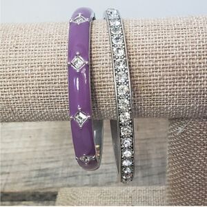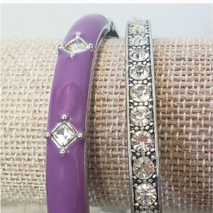 Purple enameled Bangle is hinged and has crystal accents.