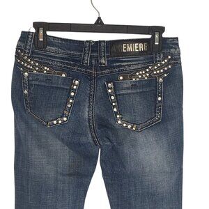 PREMIERE by rue21 Jeans Womens 3/4R Blue Slim Boot Stretch Embellished Pockets