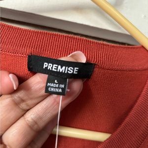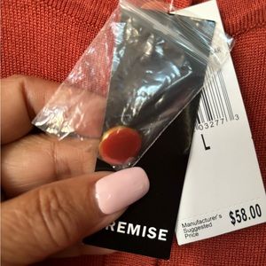 Brand New rust “Cinnamon” color. 78%Rayon. 22 Nylon . Size Large . From shoulder length to waist is 22 1/2 . Acosta chest is 19 .Sleeves 19” . Extra button . Very nice to use with dress up or casual wear . For office or business wear , will look dressy . Smoke free !