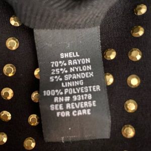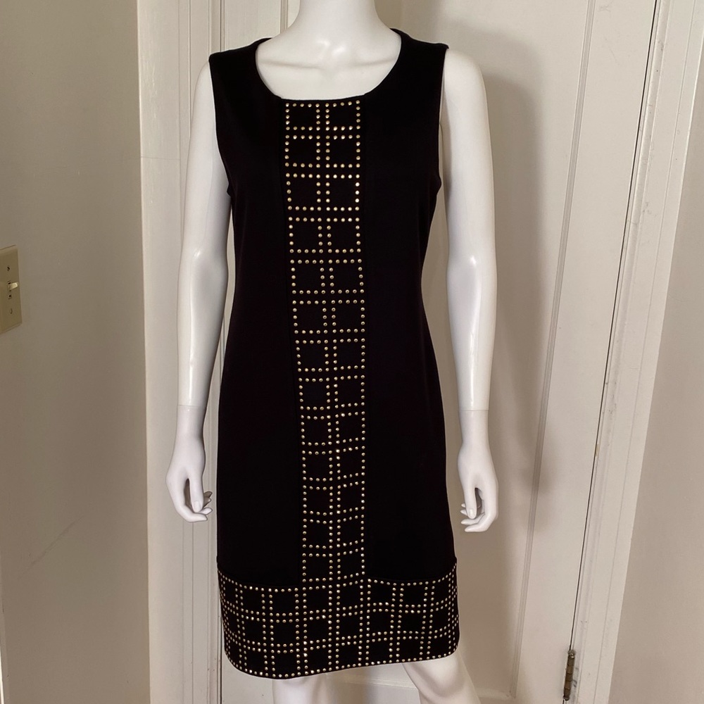 Very Sharp! Black Dress with Gold Embellishment. Zipper back. NEW without tags. ALL SALES FINAL