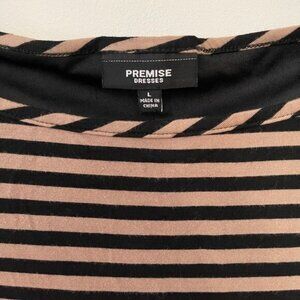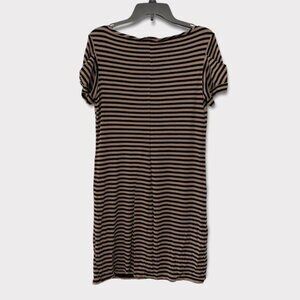 PREMISE Dresses Striped Tan/ Brown Black Short Sleeve Shirt Dress
