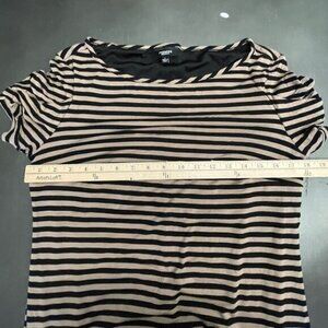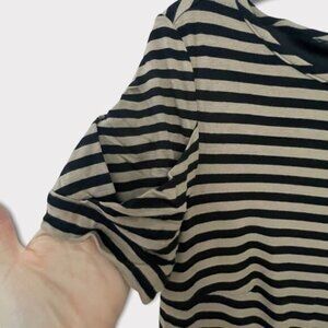 PREMISE Dresses Tan Nautical Stripe Shirt Dress Short Jersey Boat Neck Pockets L