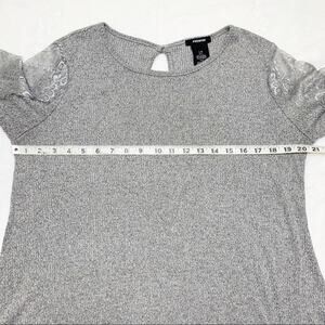 PREMISE Heather Gray Silver Lace Sleeve Long Sweater size Large
