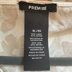 PREMISE Tan and White Floral Embroidered Linen Blend V Neck Tunic