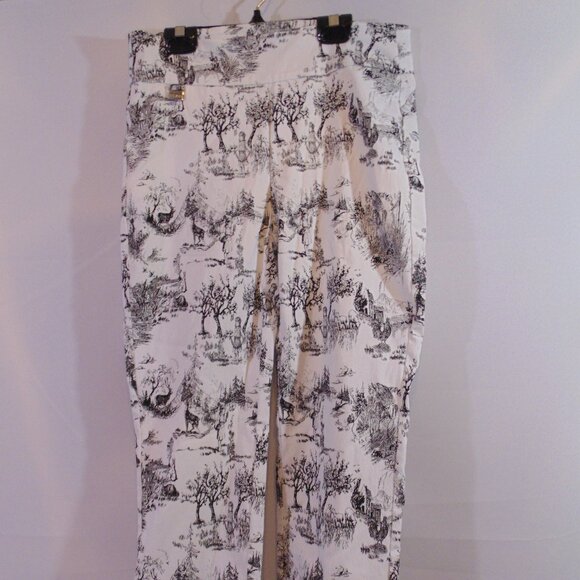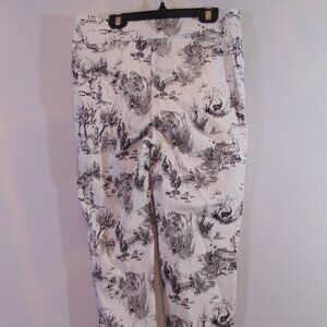 Premise Cropped/Ankle pants woodland/farm print casual pants. Size Small. White with black print. Rayon/Nylon/Spandex blend. 22 1/2" inseam. Great condition No holes, tears or stains Please see pictures for greater details.