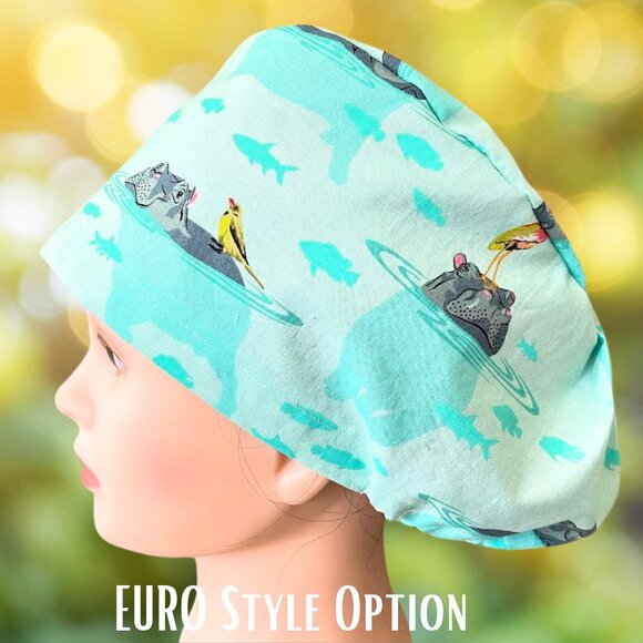 PREMIUM Hippo~ Euro Style Scrub Cap, Unisex Nurse Cap, CNA, RN, MD