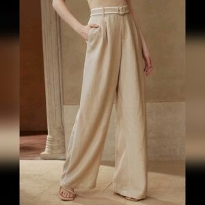 PREMIUM LINEN CONTRAST TRIM SUIT PANTS