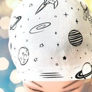 PREMIUM Optic White Space~Euro Scrub Cap Unisex Nurse Cap, CNA,MD,PA,Tech,Vet