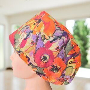PREMIUM Orange Poppies~ Euro Scrub Cap~ Unisex Nurse Cap