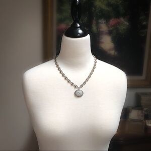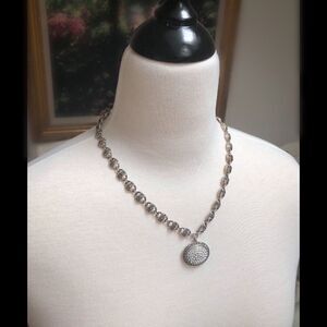 PREMIUM THAI SILVER & PAVE STONE LINK & PENDANT NECKLACE