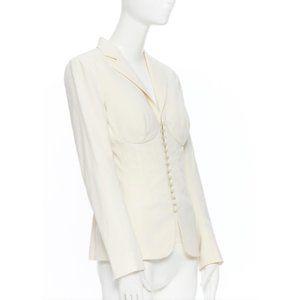 PREOWNED $2K LA PERLA SS17 RUNWAY CORSET CREAM STRETCH WOOL BLAZER IT 46C US 10