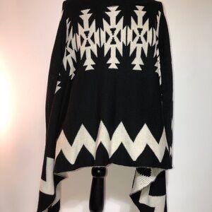PREOWNED Ci SONO cardigan Southwest sweater size M/L Stay stylish and cozy with this black and white sweater Perfect for layering and adding a chic touch to any outfit.