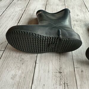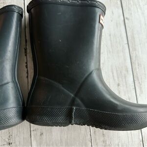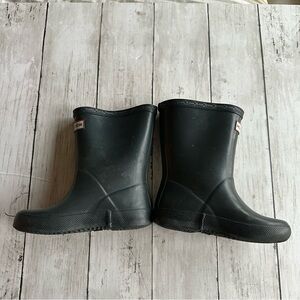 PREOWNED KIDS GIRLS BLACK HUNTER RAIN BOOTS SIZE 8. I am pretense they are a size 8 girls. Check bottom of shoe and measurements to confirm in photos. Has some scuffs and marks from use. Stock# shoe bag