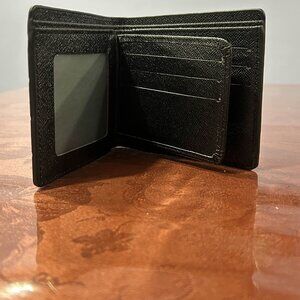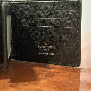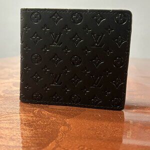 Louis Vuitton wallet crafted from premium black leather with embossed monogram pattern throughout. Sleek and stylish, this wallet offers both luxury and everyday functionality.