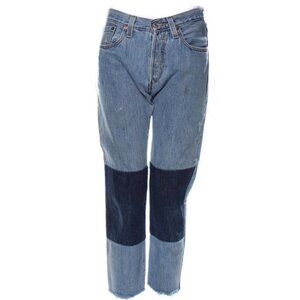 Reformation - Straight Leg Jean with Button Closure - Blue with a Color-block Pattern - Light Wash - Mid- Rise - Cropped - 5 pockets - Raw-Edge Trim Measurements Rise - 10.5” Waist - 28” Hip - 38” Inseam - 25” Leg Opening - 13” Fabric - Not listed but it feels like cotton Color - Blue Clothing Size - XS *Pre-Loved Item in Good Condition - Light Mark on Front This item is final sale and is not returnable . Charity Benefited: Kansas City Hospice & Palliative Care: 40% of the Sell Price