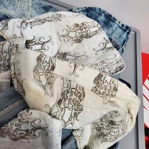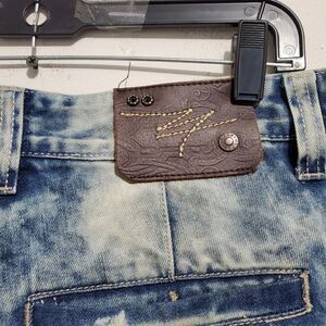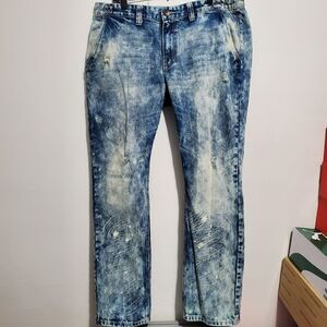 PREOWNED SZ 38X32 MENS LEVEL 7 DENIM DISTRESSED ACID WASH JEANS