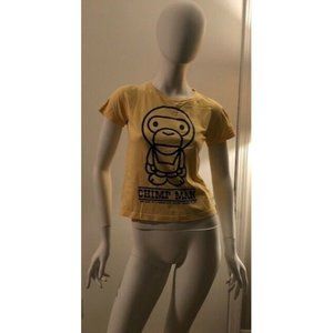 Pre-owned BAPE A Bathing Ape Baby Milo short sleeve yellow t shirt with blue print. Unisex US size xs. Adorable, one of a kind.