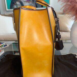 "Built from burnished leather for a rich sensibility, our Prescott tote is a sleek and sumptuous essential. Featuring a spacious silhouette, its suede-lined interior is equipped with a zip pocket for essentials."