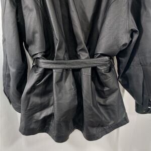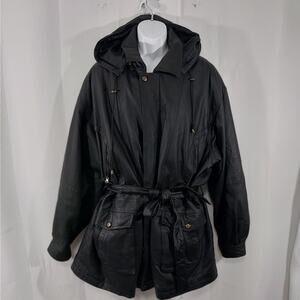 PRESTIGE LEATHER! BLACK GENUINE LEATHER BELTED WAIST HOODIE COAT, JACKET! SZ 2XL