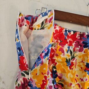 PRESTON & York Size 16 A-Line Colorful Cotton Floral Knee Length Side Zip Skirt