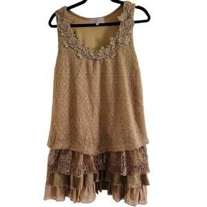 PRETTY ANGEL Knit Crochet Lace Layered Lagenlook Fairycore Mini Dress Sash Sz M